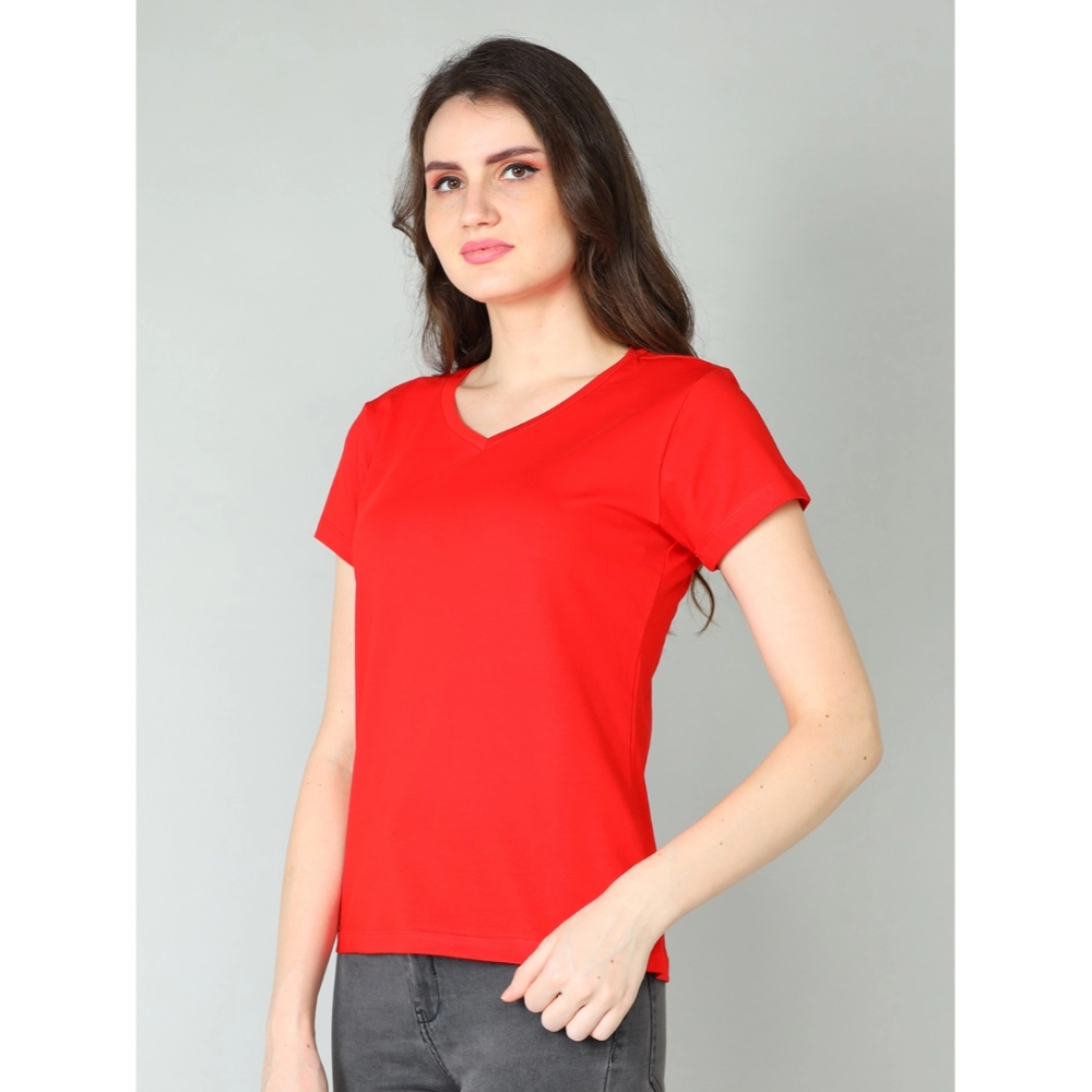 Generic Women’s Cotton Blended Solid Sweetheart Half Sleeve T-Shirt (Red)