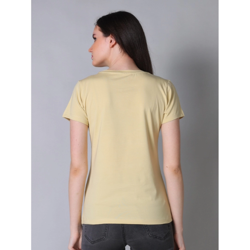 Generic Women’s Cotton Blended Solid U-Neck Half Sleeve T-Shirt (Beige)