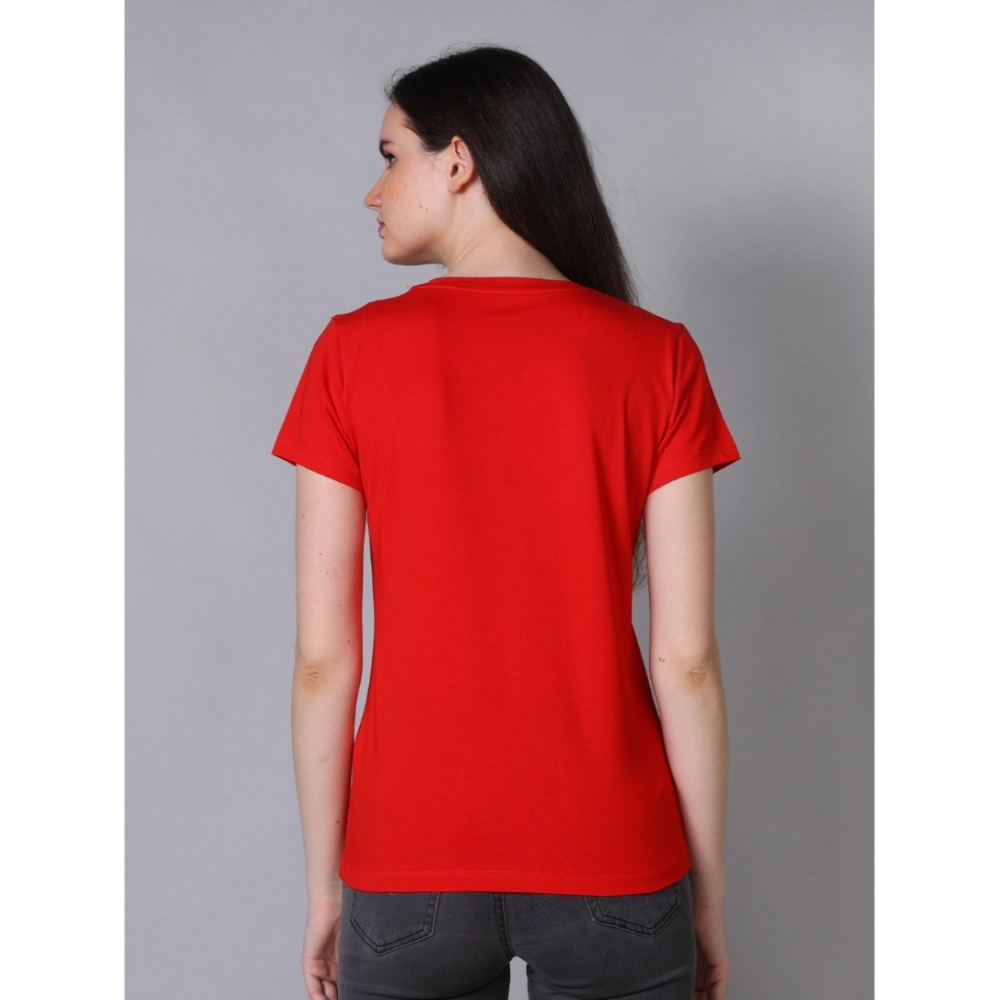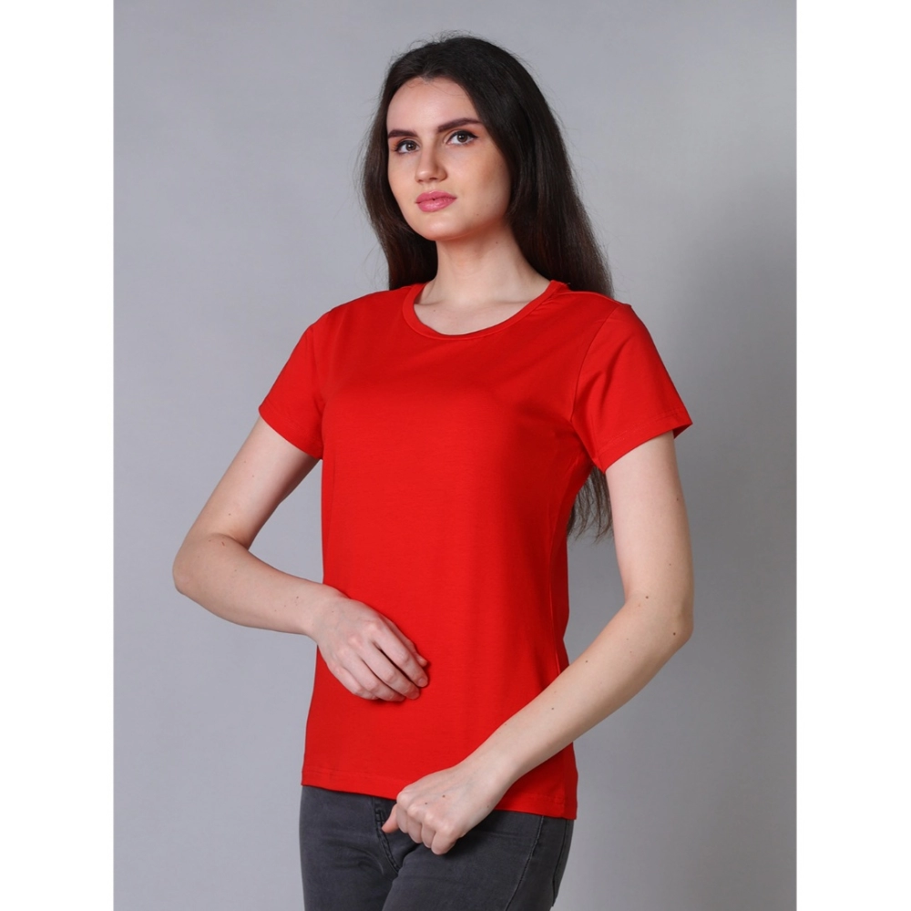 Generic Women’s Cotton Blended Solid U-Neck Half Sleeve T-Shirt (Red)