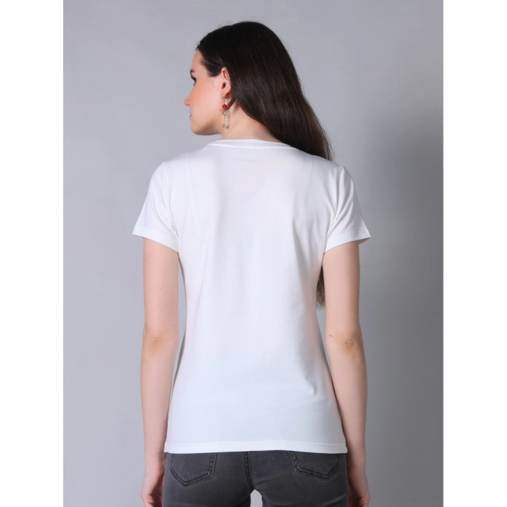 Generic Women’s Cotton Blended Solid U-Neck Half Sleeve T-Shirt (White)