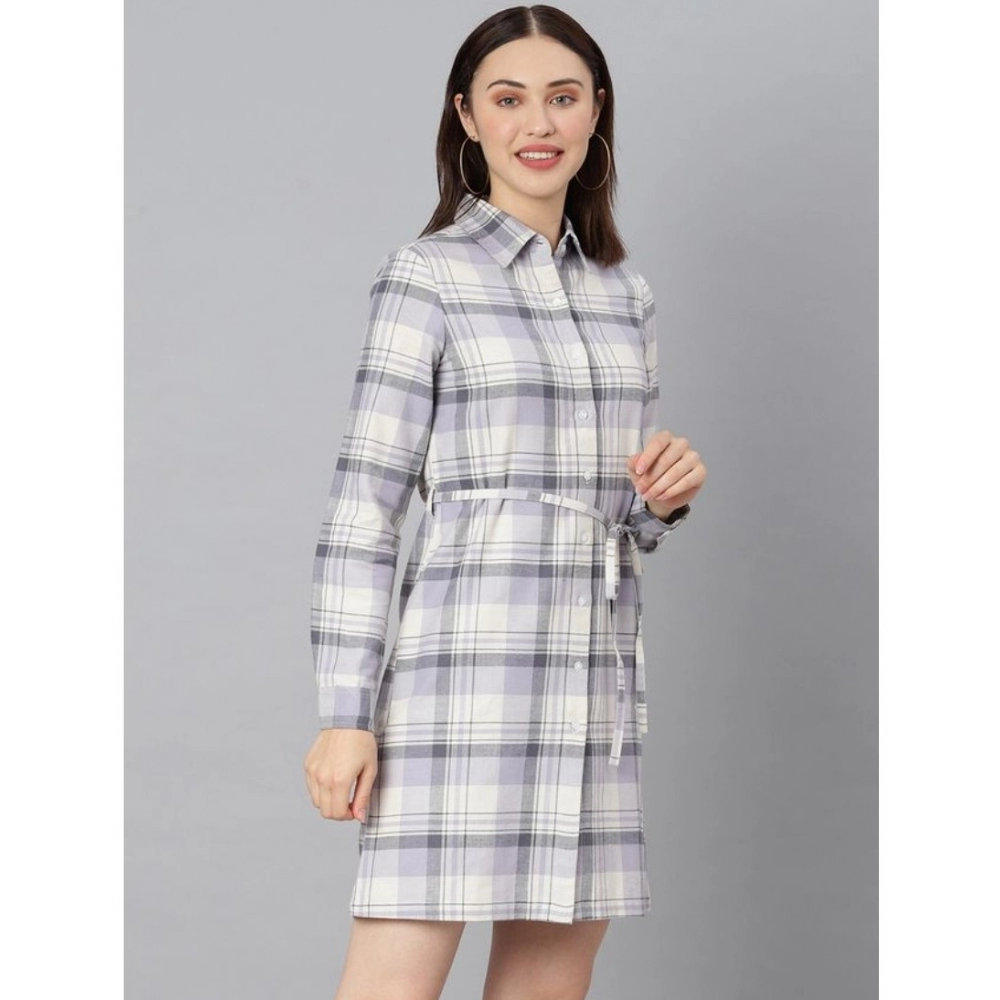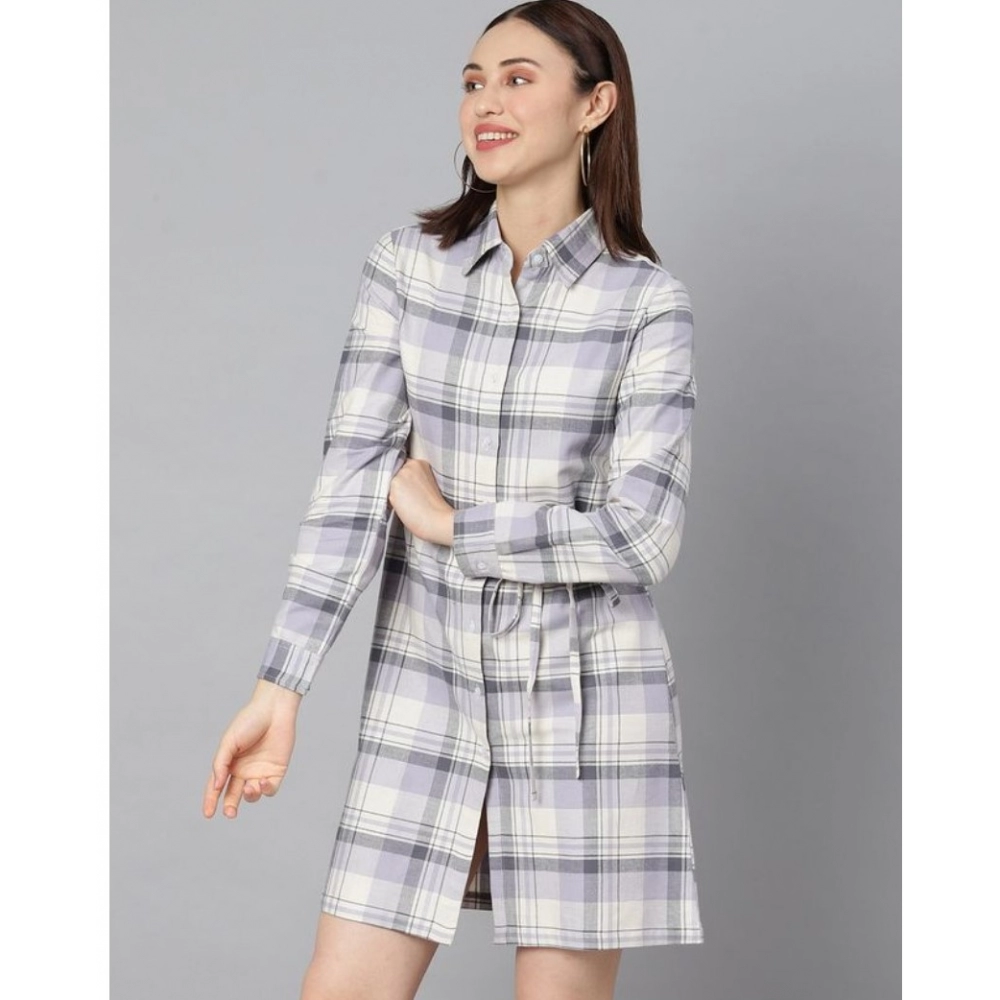 Women’s Cotton Checkered Long Sleeves Above Knee Dress