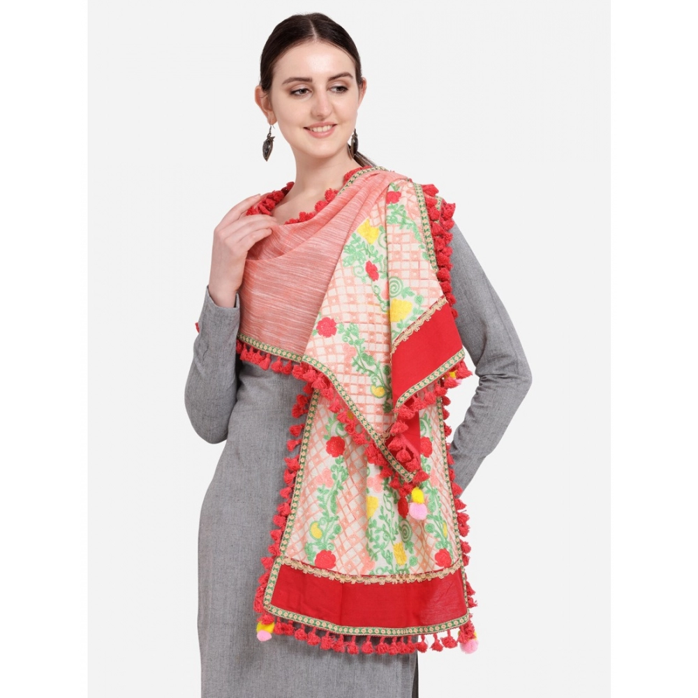 Generic Women’s Cotton Embroidered Dupatta (Peach, Length: 1.5 to 2 Mtr)