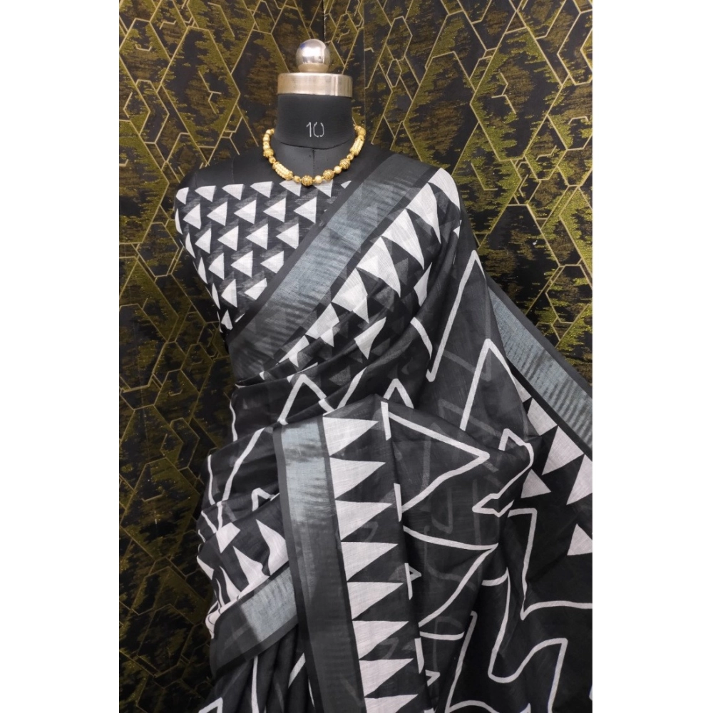 Generic Women’s Cotton Linen Woven Design Saree With Unstitched Blouse 5.5Mtr (Black)