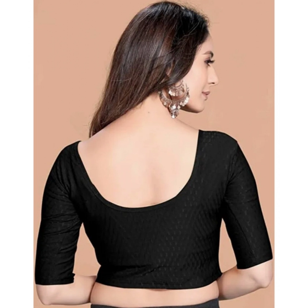 Generic Women’s Cotton Lycra Blend Solid Non Padded Readymade Blouse (Black, Size: Free Size)
