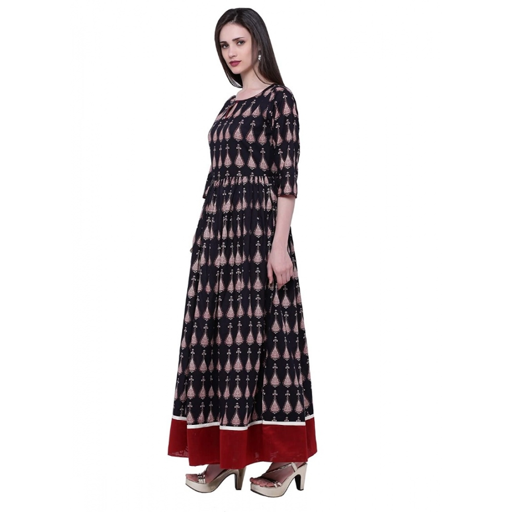 Generic Women’s Cotton Printed Anarkali Kurti (Black, Cotton)