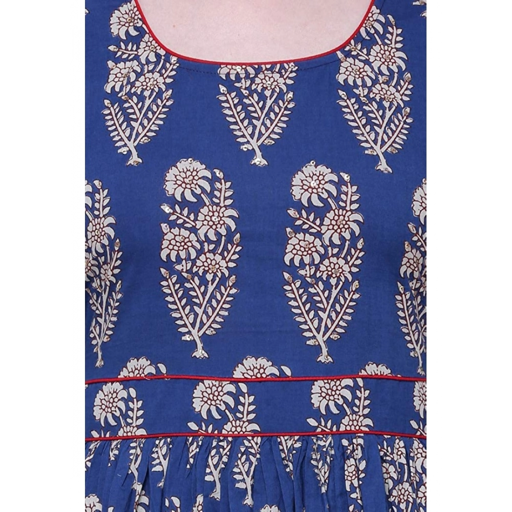 Generic Women’s Cotton Printed Anarkali Kurti (Blue, Cotton)