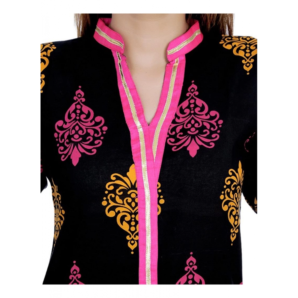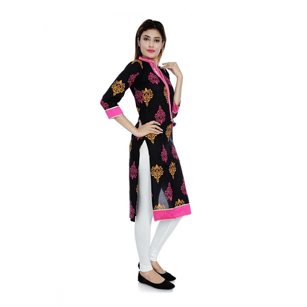 Generic Women’s Cotton Printed Solid Kurti (Black, Pink, Cotton)