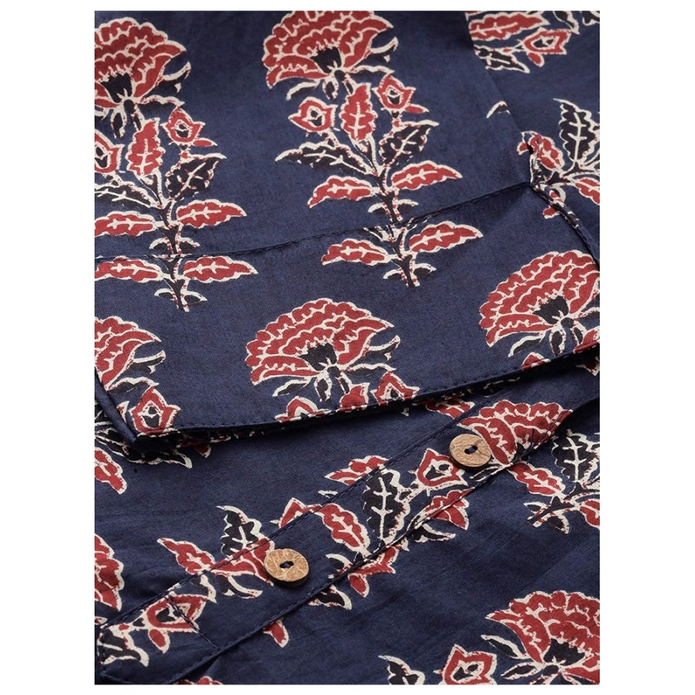 Generic Women’s Cotton Printed Straight Kurti (Blue, Cotton)