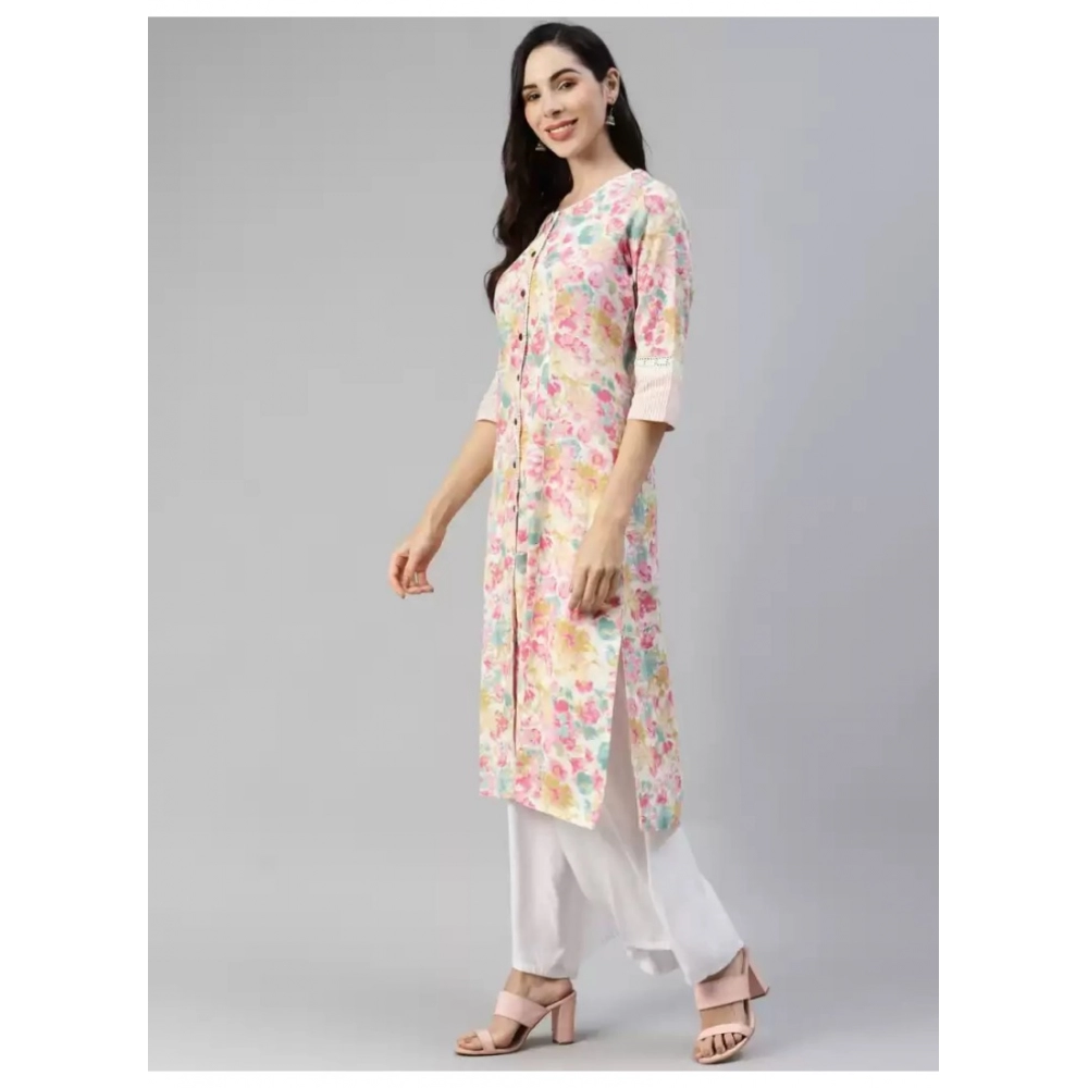 Generic Women’s Cotton Printed Straight Kurti (Multicolor, Cotton)