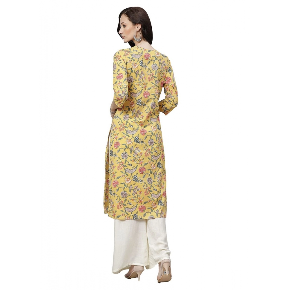 Generic Women’s Cotton Printed Straight Kurti (Yellow, Cotton)