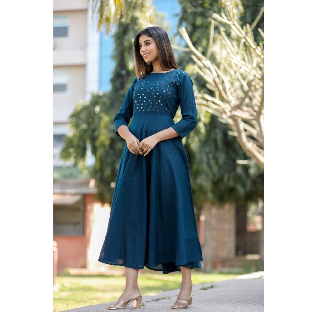 Generic Women’s Cotton Solid 3/4 Sleeve Round Neck Kurti (Blue)