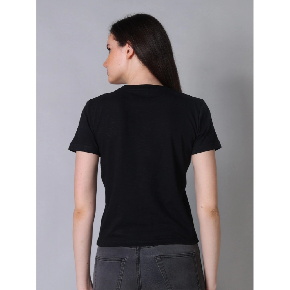 Generic Women’s Cotton Solid Closure Neck Half Sleeve T-Shirt (Black)