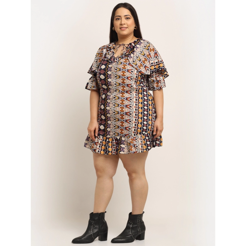Women’s Crepe Printed Knee Length Fit and Flare Dress (Multi)