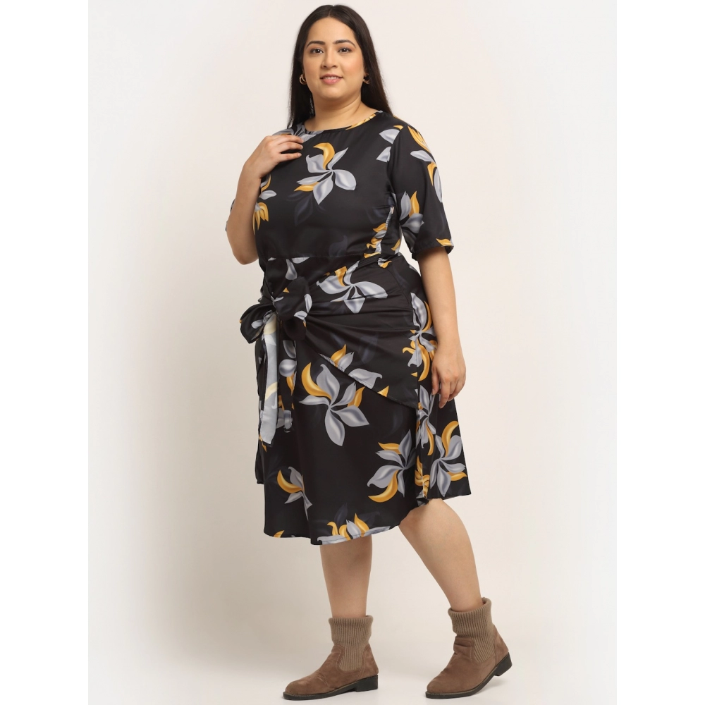 Generic Women’s Crepe Printed Knee Length Fit and Flare Dress (Multi)