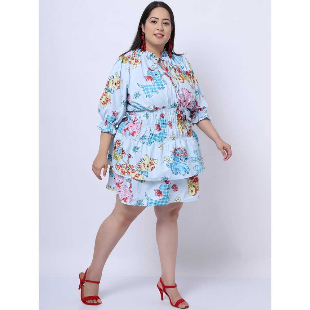 Generic Women’s Crepe Printed Knee Length Fit and Flare Dress (Multicolor)