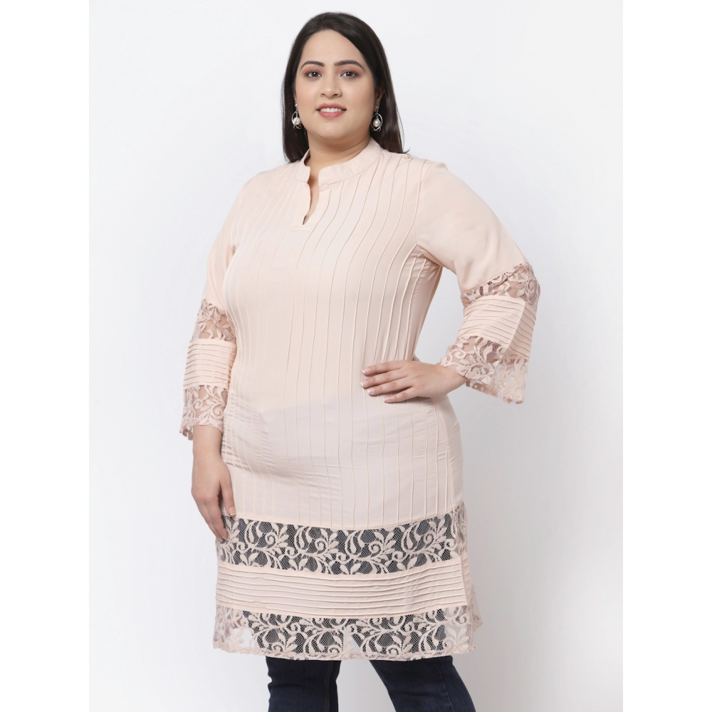 Women’s Crepe Solid Knee Length Fit and Flare Dress (Beige)