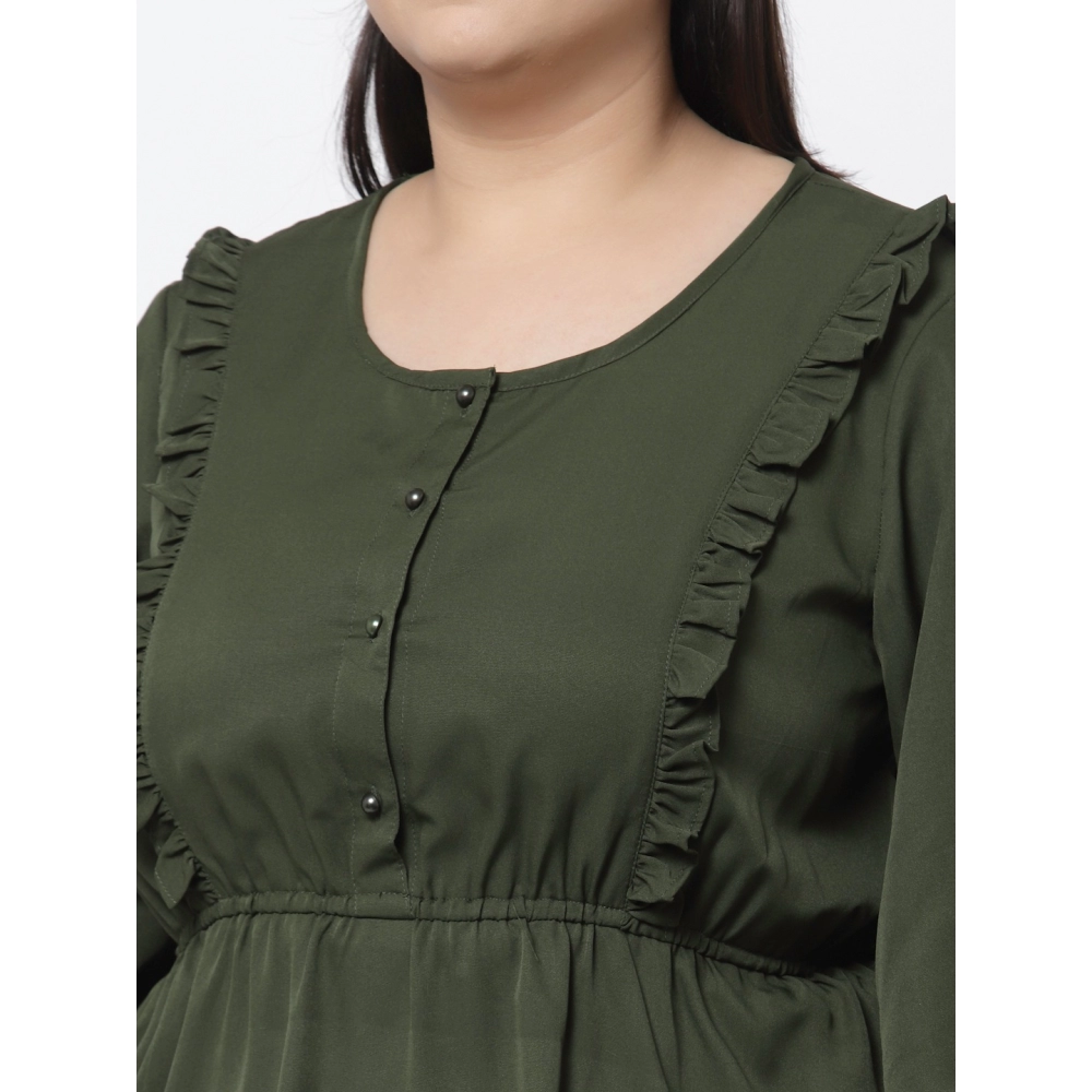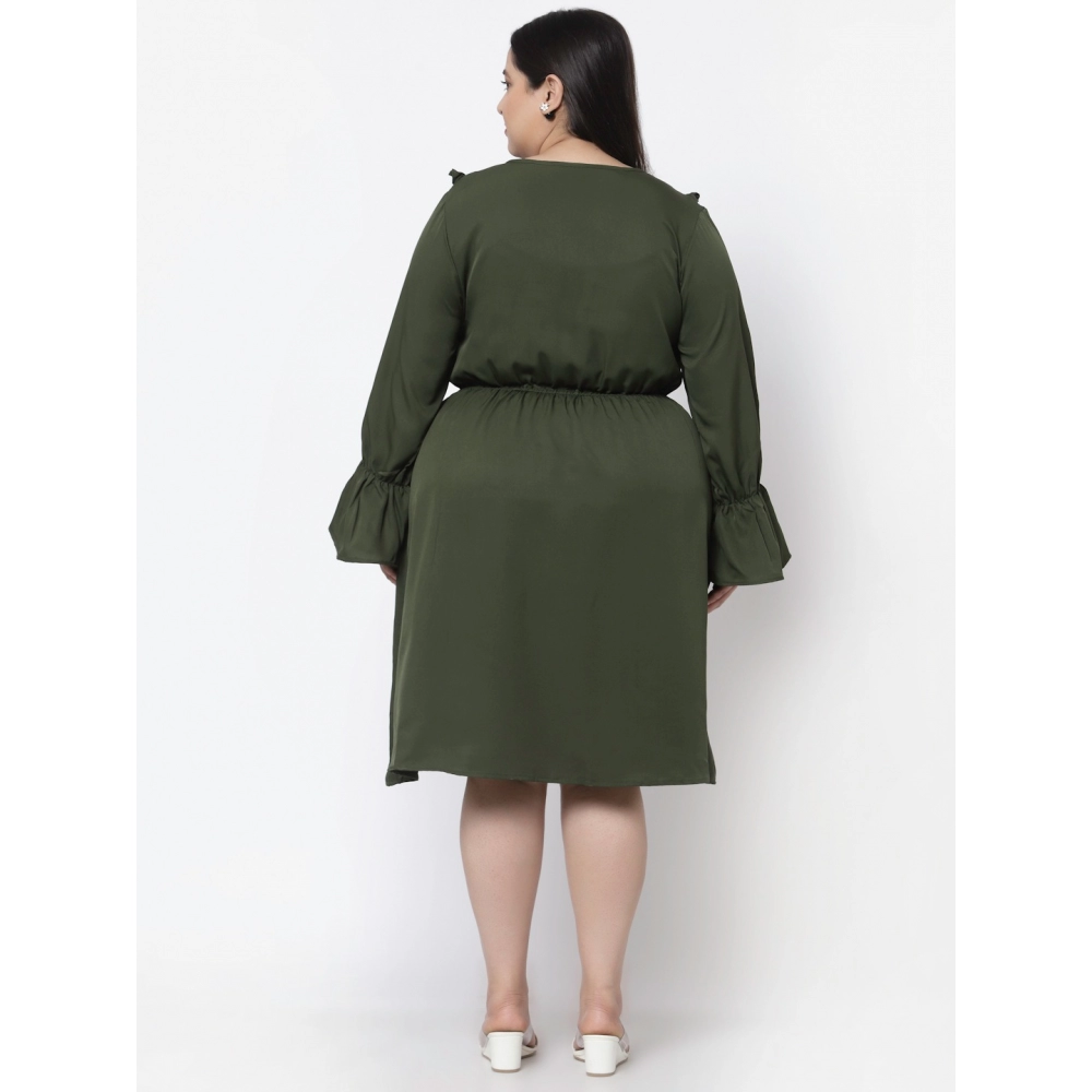 Generic Women’s Crepe Solid Knee Length Fit and Flare Dress (Botal Green)