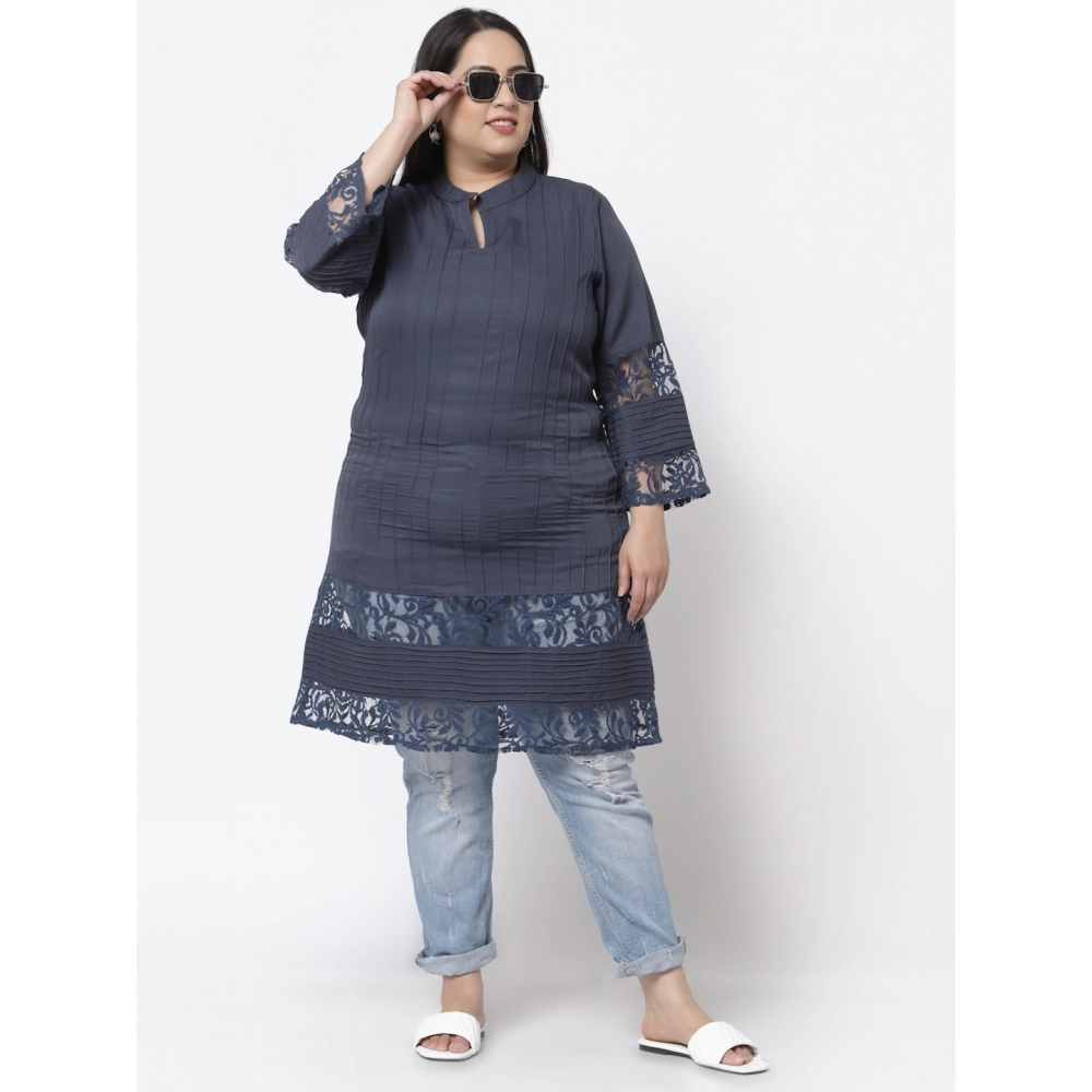 Generic Women’s Crepe Solid Knee Length Fit and Flare Dress (Grey)