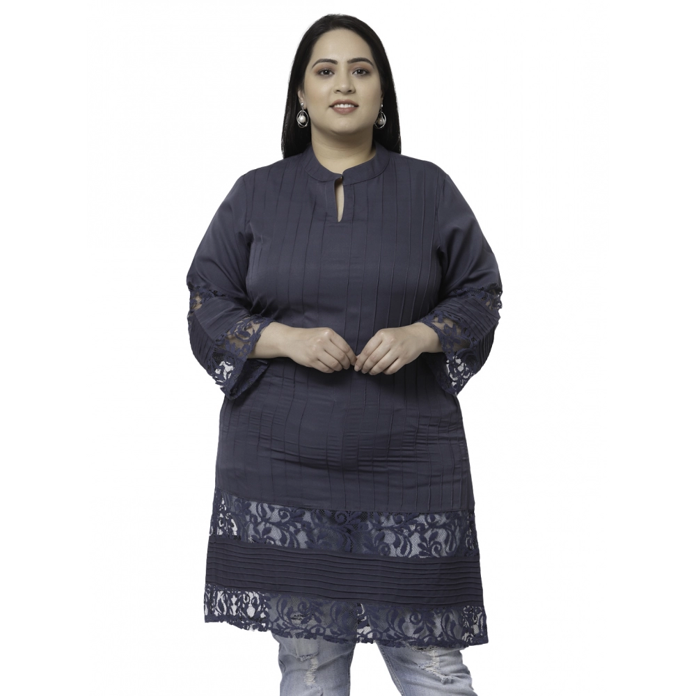 Women’s Crepe Solid Knee Length Fit and Flare Dress (Grey)