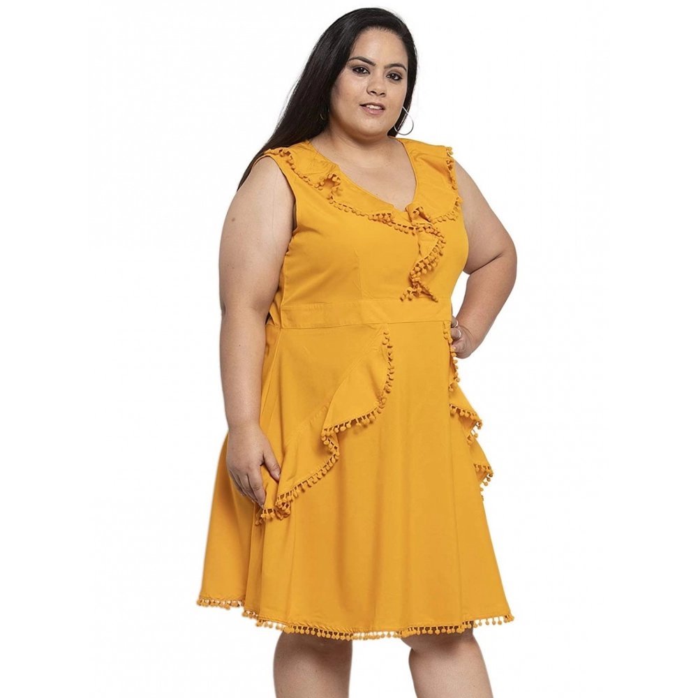 Generic Women’s Crepe Solid Knee Length Fit and Flare Dress (Musted)