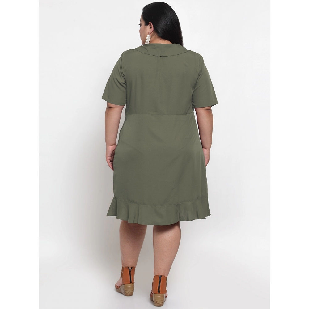 Generic Women’s Crepe Solid Knee Length Fit and Flare Dress (Olive Green)