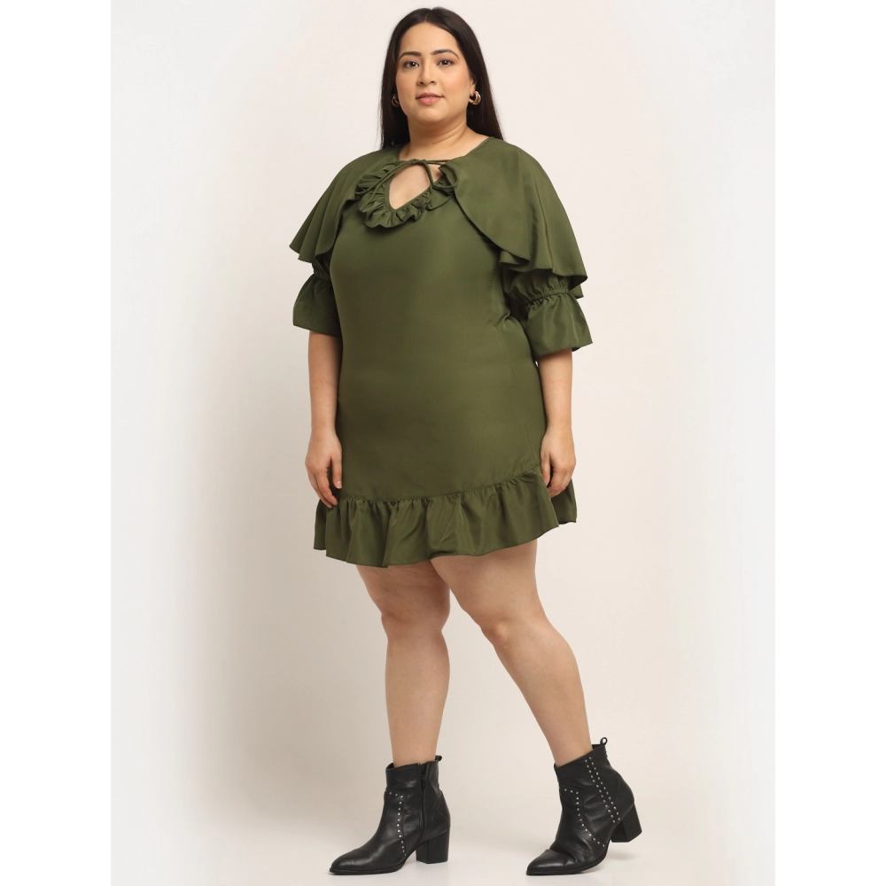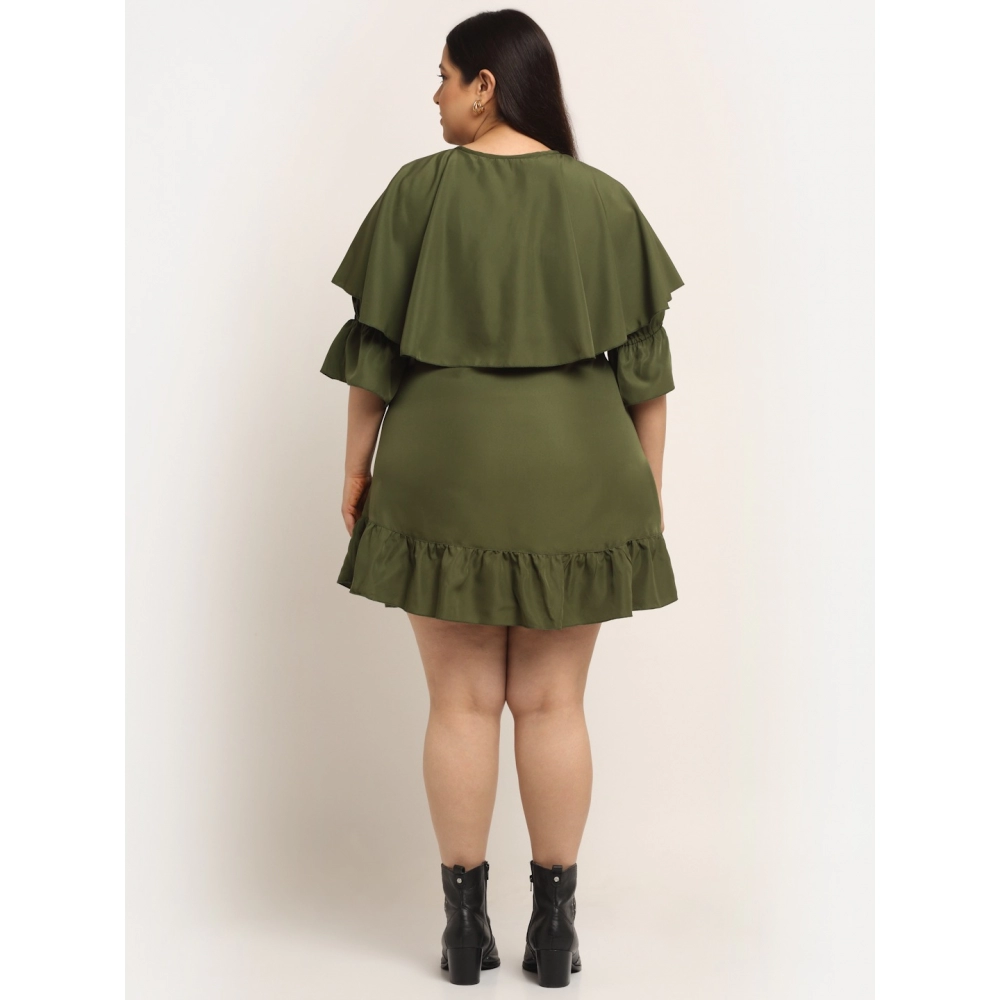 Women’s Crepe Solid Knee Length Fit and Flare Dress (Olive Green)