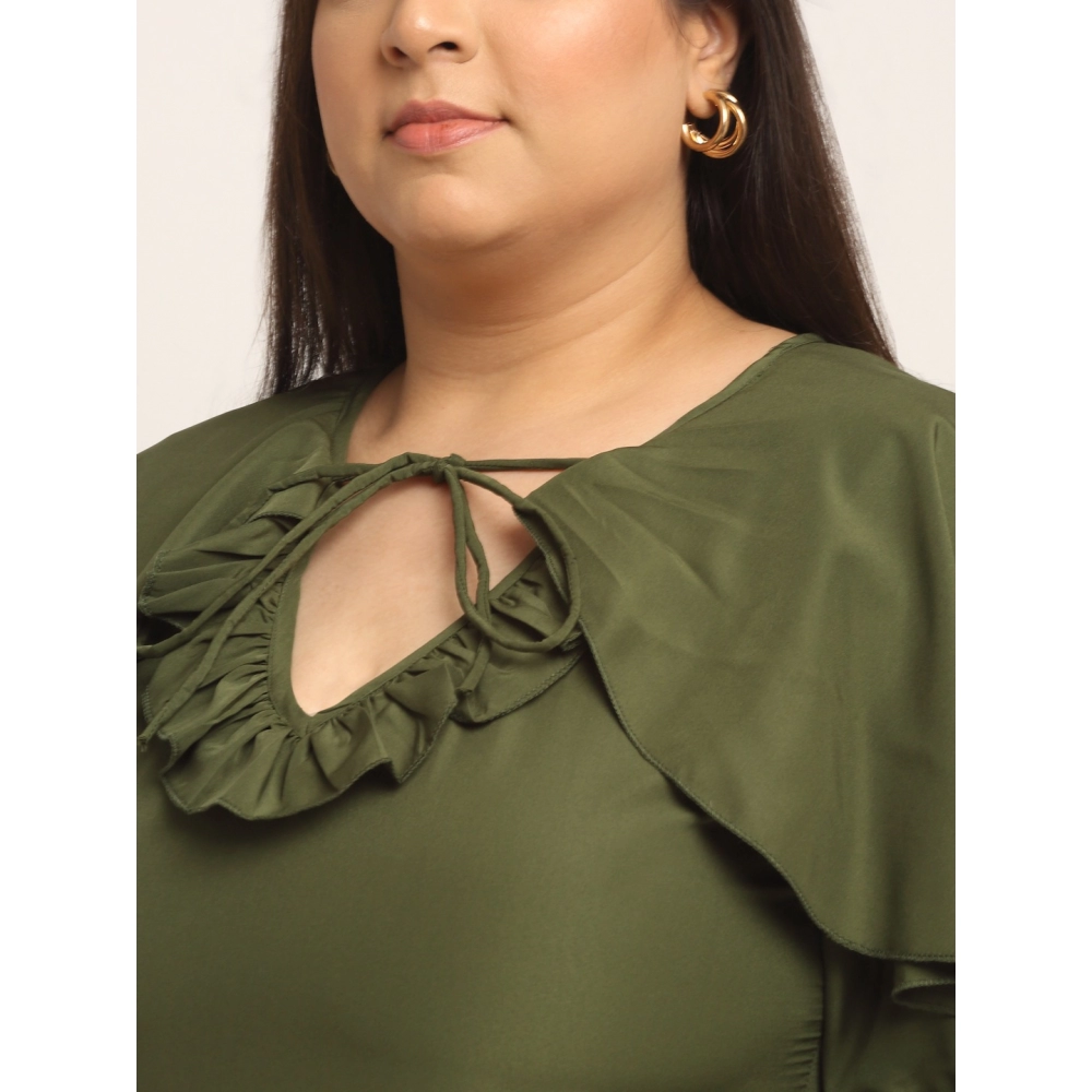 Generic Women’s Crepe Solid Knee Length Fit and Flare Dress (Olive Green)