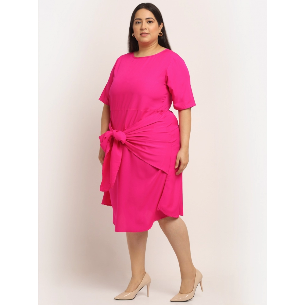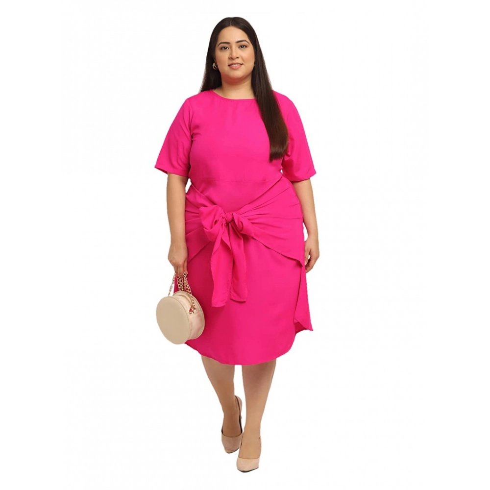 Generic Women’s Crepe Solid Knee Length Fit and Flare Dress (Pink)
