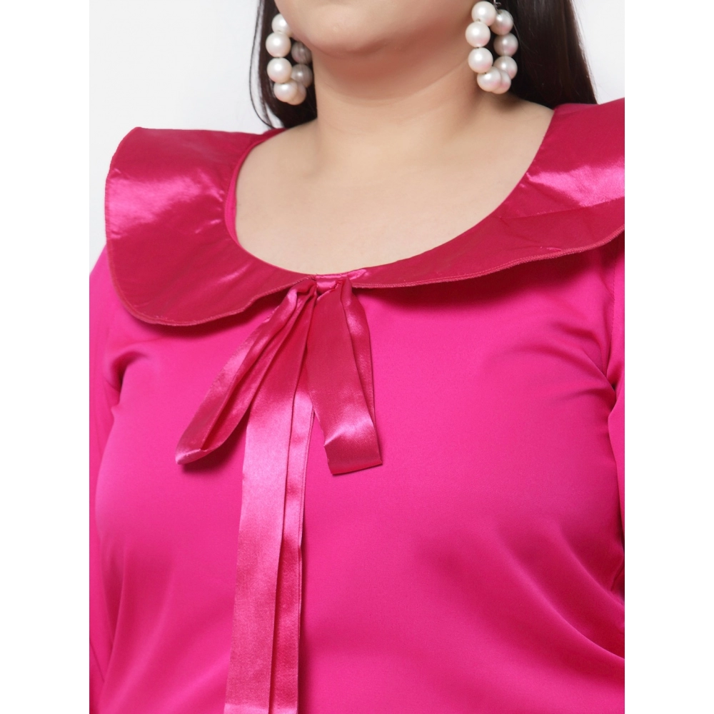 Women’s Crepe Solid Knee Length Fit and Flare Dress (Pink)