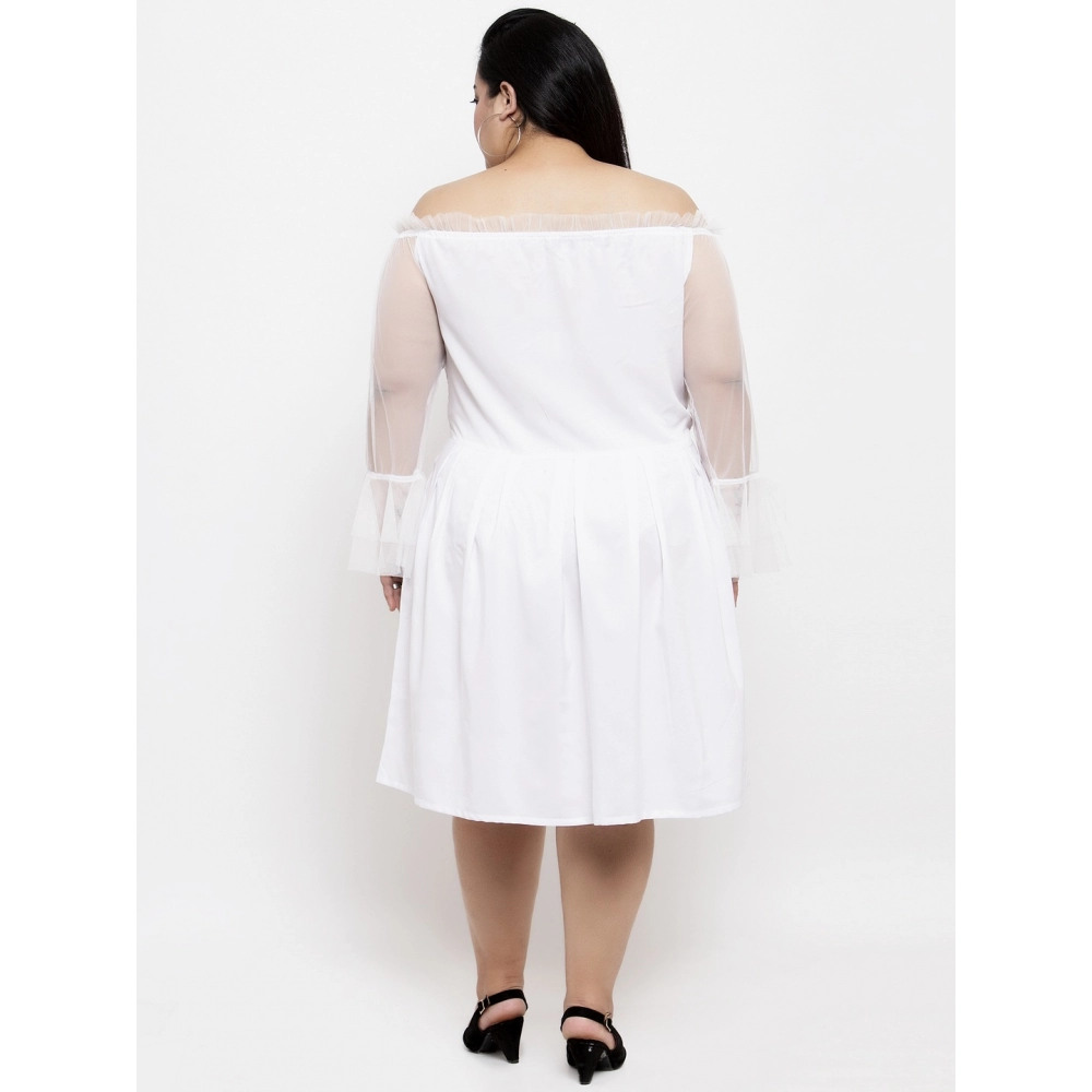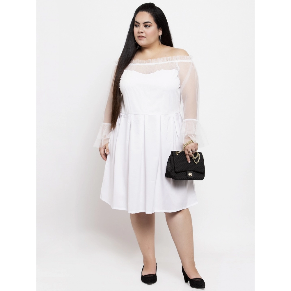 Women’s Crepe Solid Knee Length Fit and Flare Dress (White)