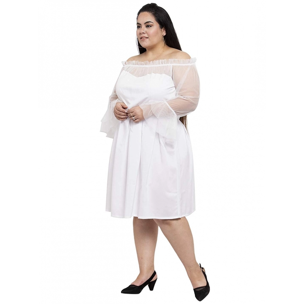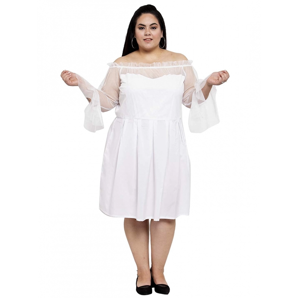 Generic Women’s Crepe Solid Knee Length Fit and Flare Dress (White)