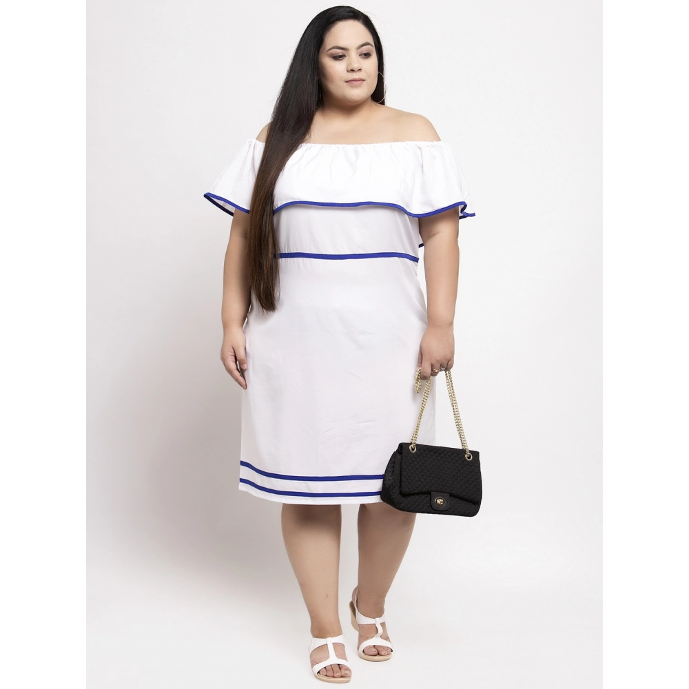 Generic Women’s Crepe Solid Knee Length Fit and Flare Dress (White)