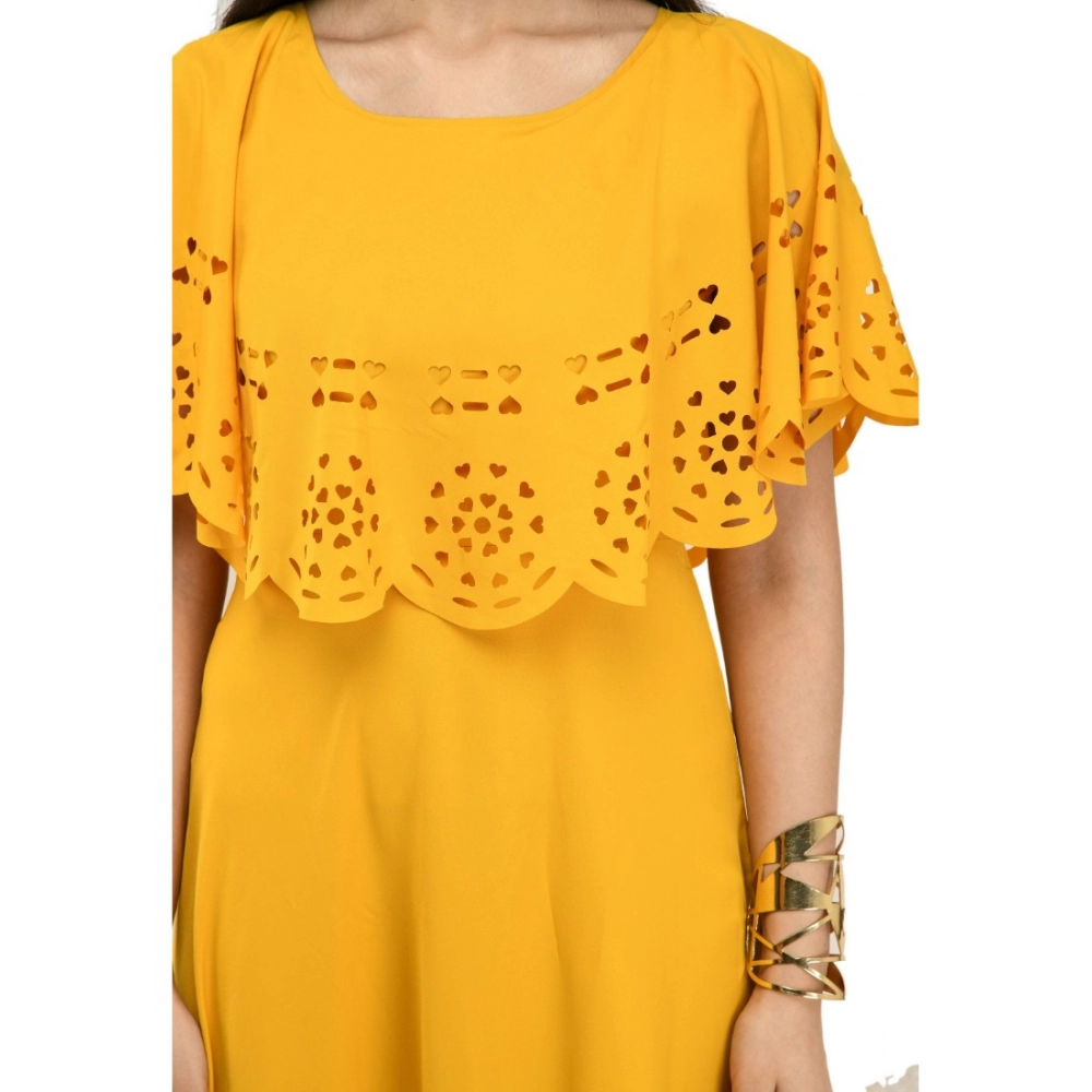 Generic Women’s Crepe Solid Sleeveless Full Length Gown(Yellow)