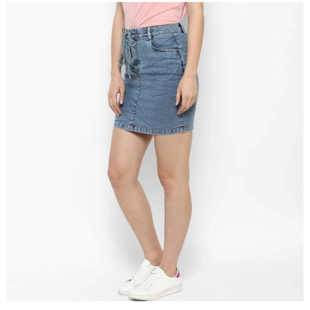 Generic Women’s Denim Draw String Buttoned Skirt (Blue)