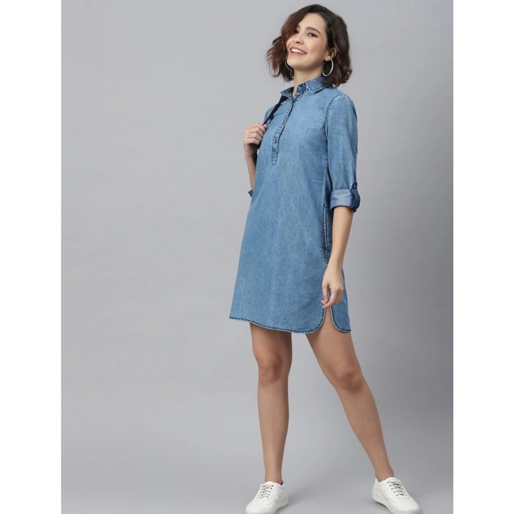 Women’s Denim Solid Long Sleeves Above Knee Dress