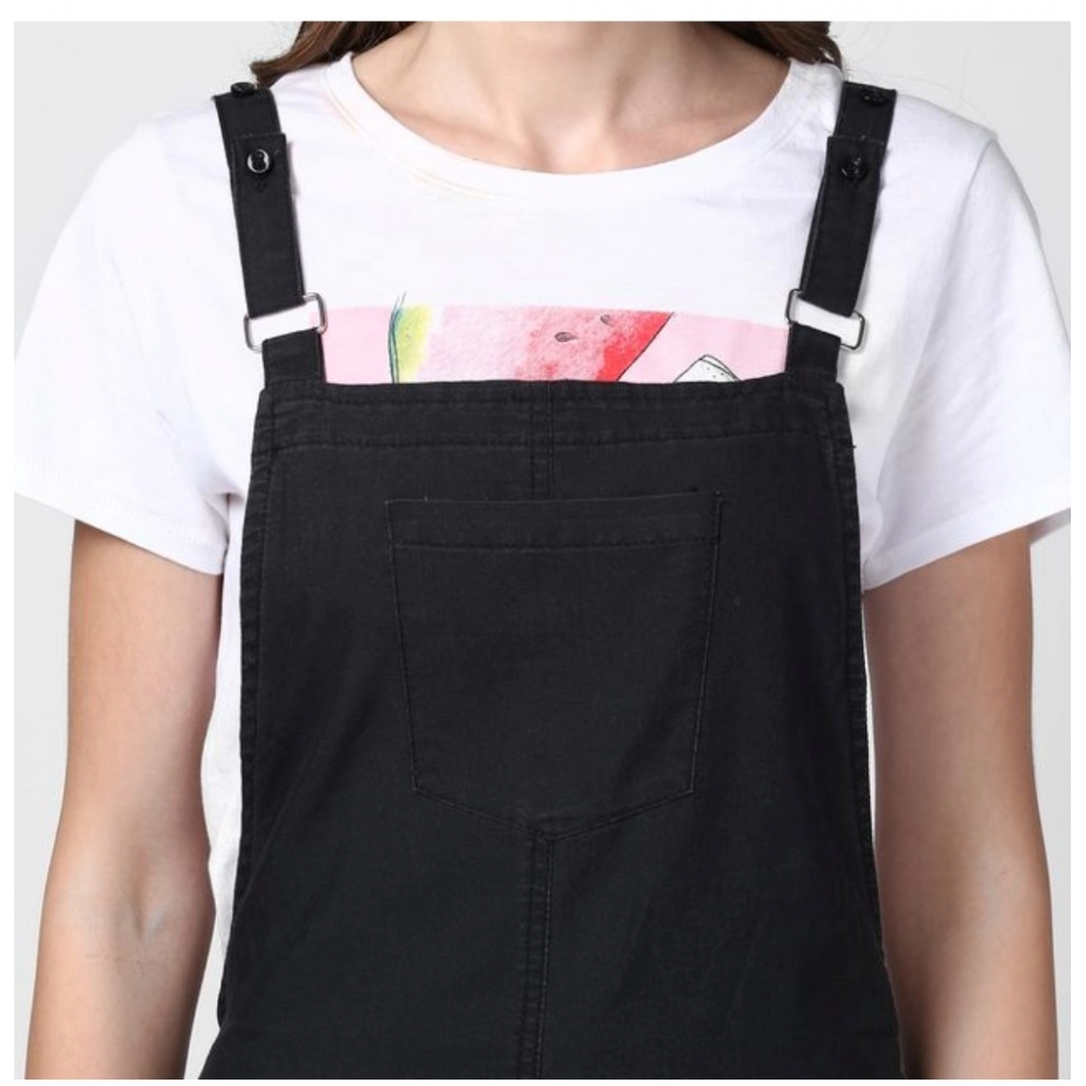 Generic Women’s Denim Solid Shoulder Straps Above Knee Dungaree (Black)
