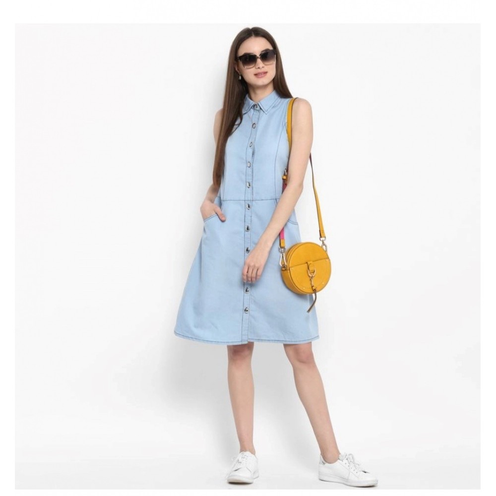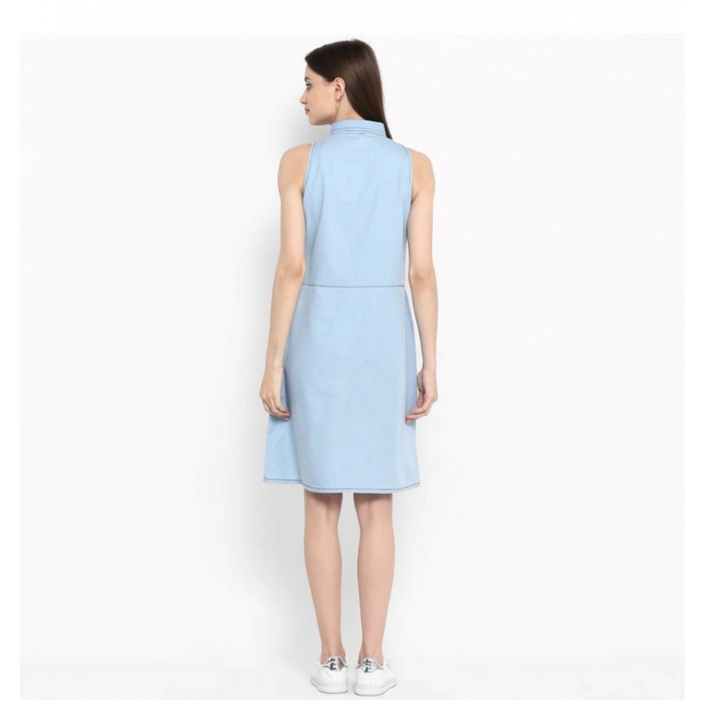 Women’s Denim Solid Sleeveless Below Knee Dress