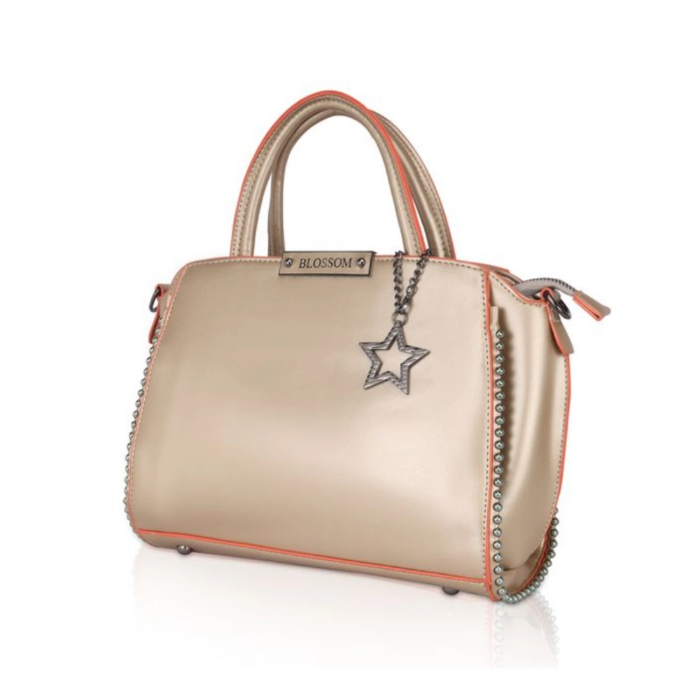 Generic Women’s Faux Leather Metal Beads Handbag (Gold)