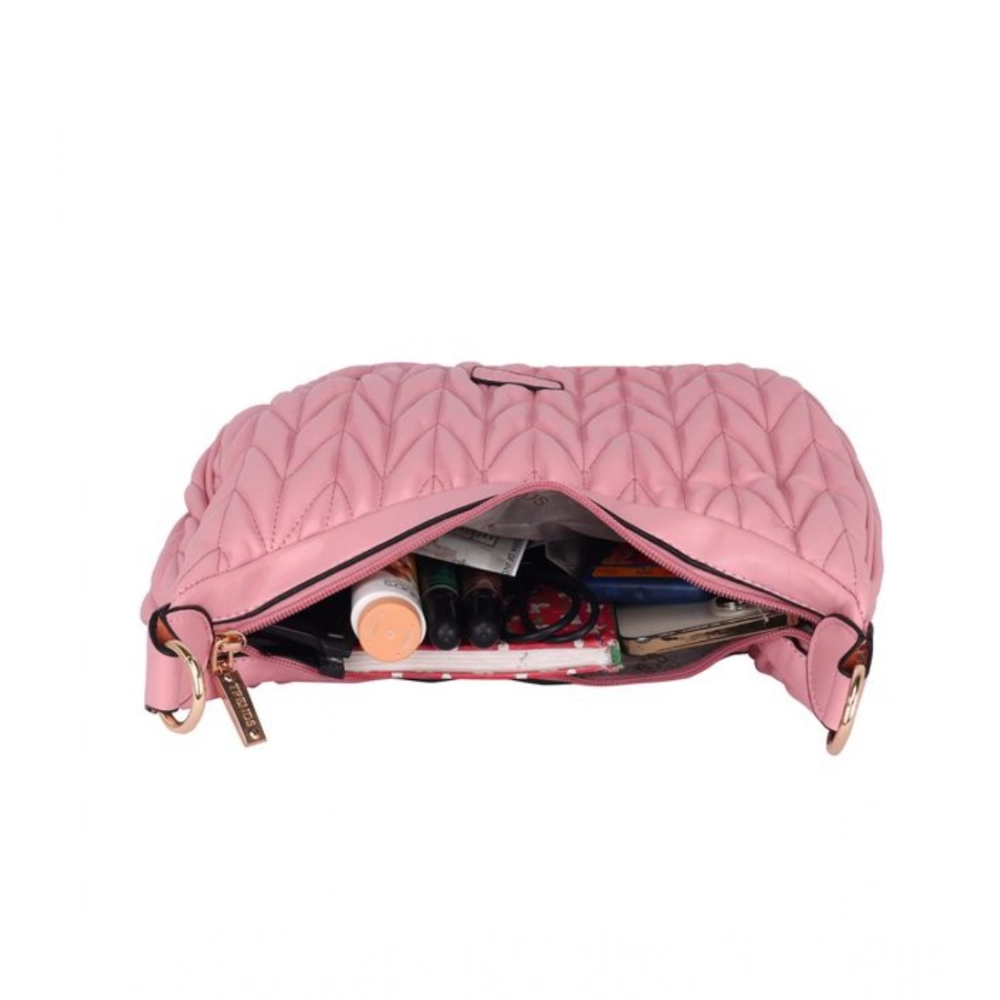 Generic Women’s Faux Leather Textured Handbag (Pink)