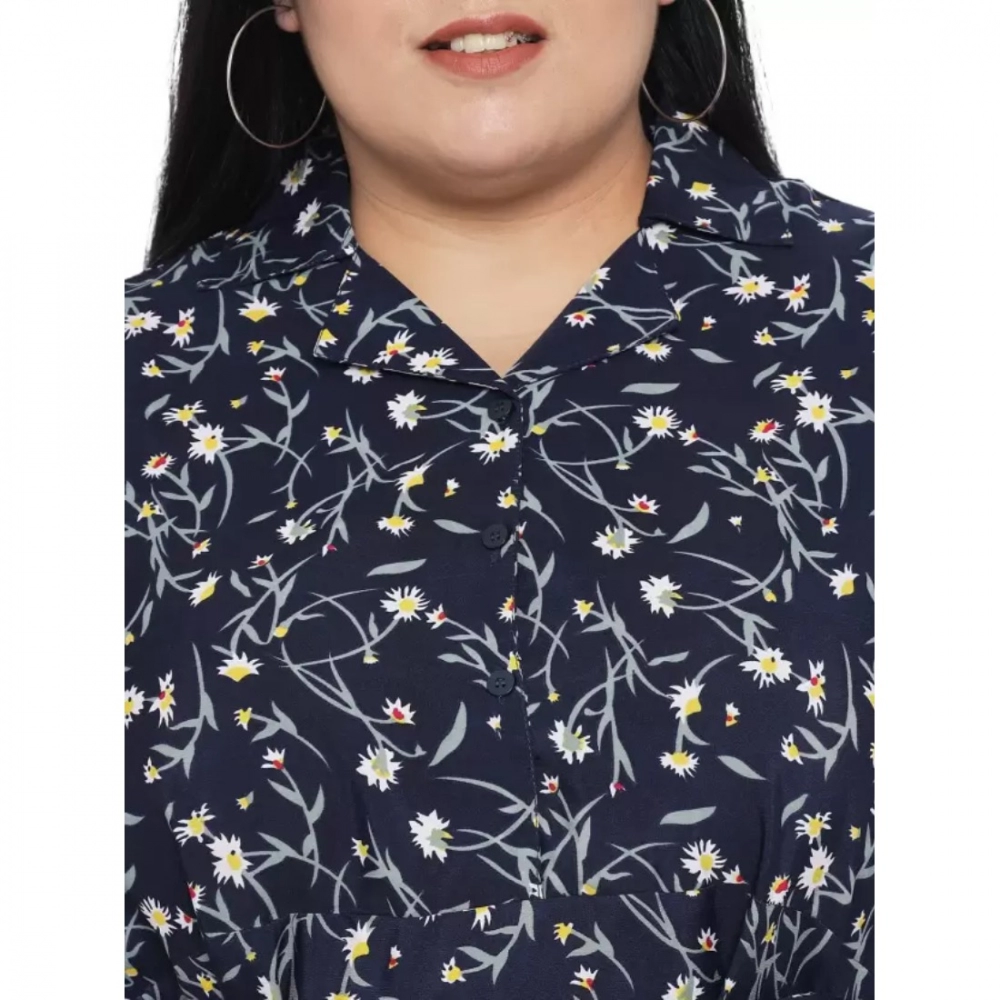 Generic Women’s Fit And Flare Blue Dress (Color:Blue, Material:Polyester)