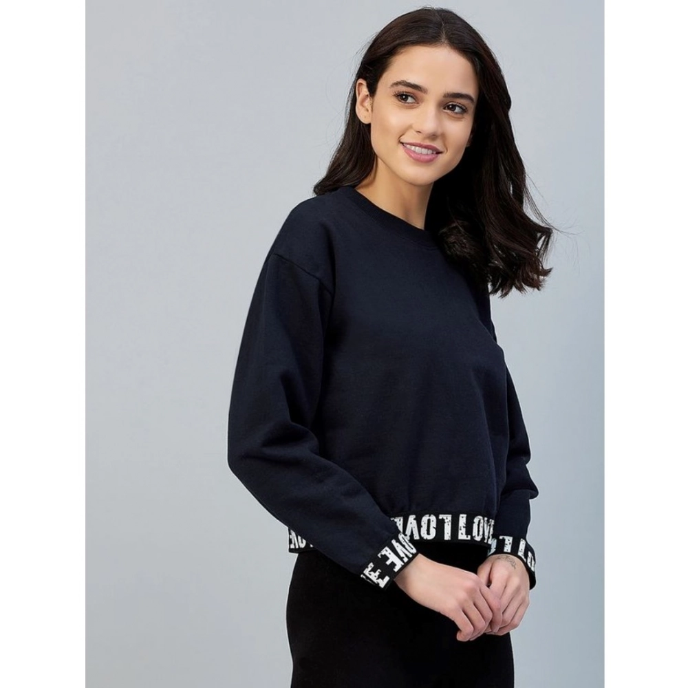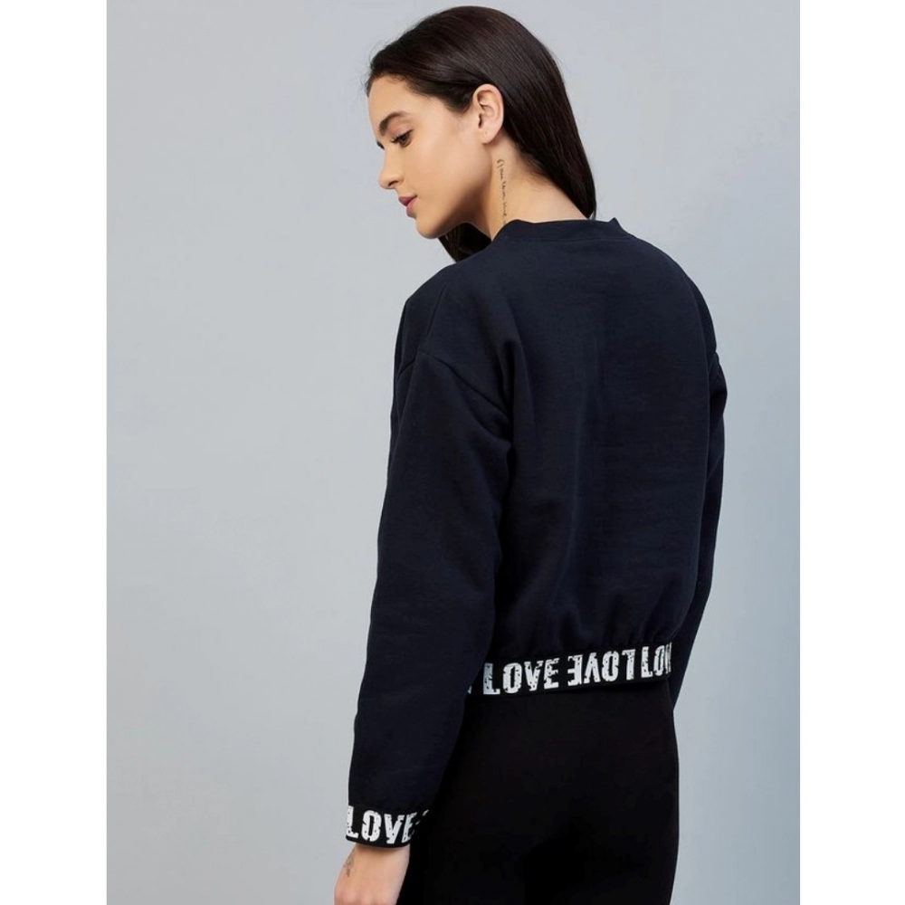 Generic Women’s Fleece Solid Long Sleeves Sweatshirt (Navy)