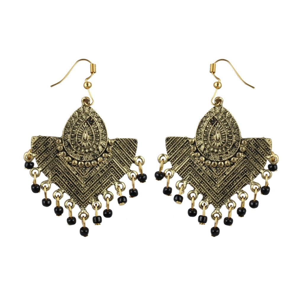 Women’s Gold Plated Beaded Tassel Dangler Earrings