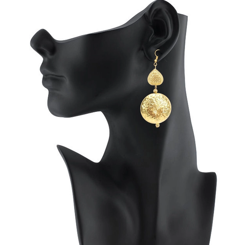 Each earring boasts a brilliant gold plated finish, giving it the luxurious look of solid gold without the hefty price tag. The delicate drop dangle style sways gracefully with your movement, catching the light and adding a touch of sophistication to any ensemble.