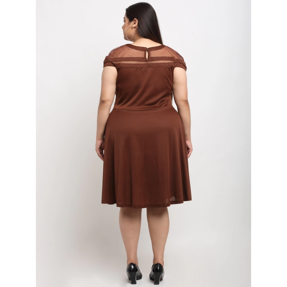 Women’s Hojri Solid Knee Length Fit and Flare Dress (Brown)