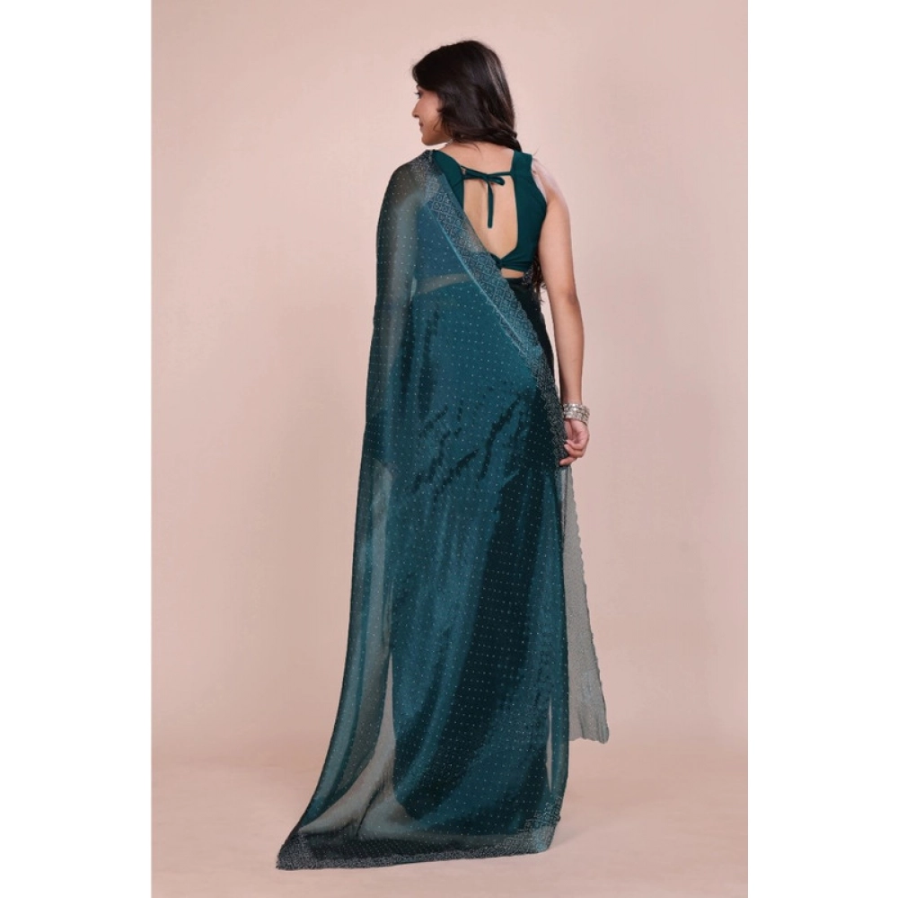 Generic Women’s Jimmy choo Embellished Bollywood Saree With Unstitched Blouse 5.5Mtr (Green)