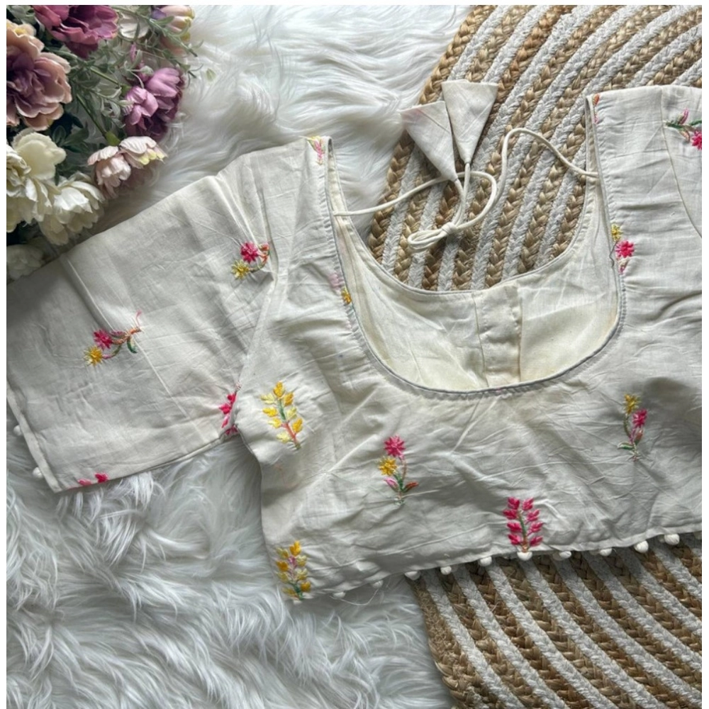 Women’s Khadi Cotton Embroidery Round Neck Short Sleeve Readymade Blouse
