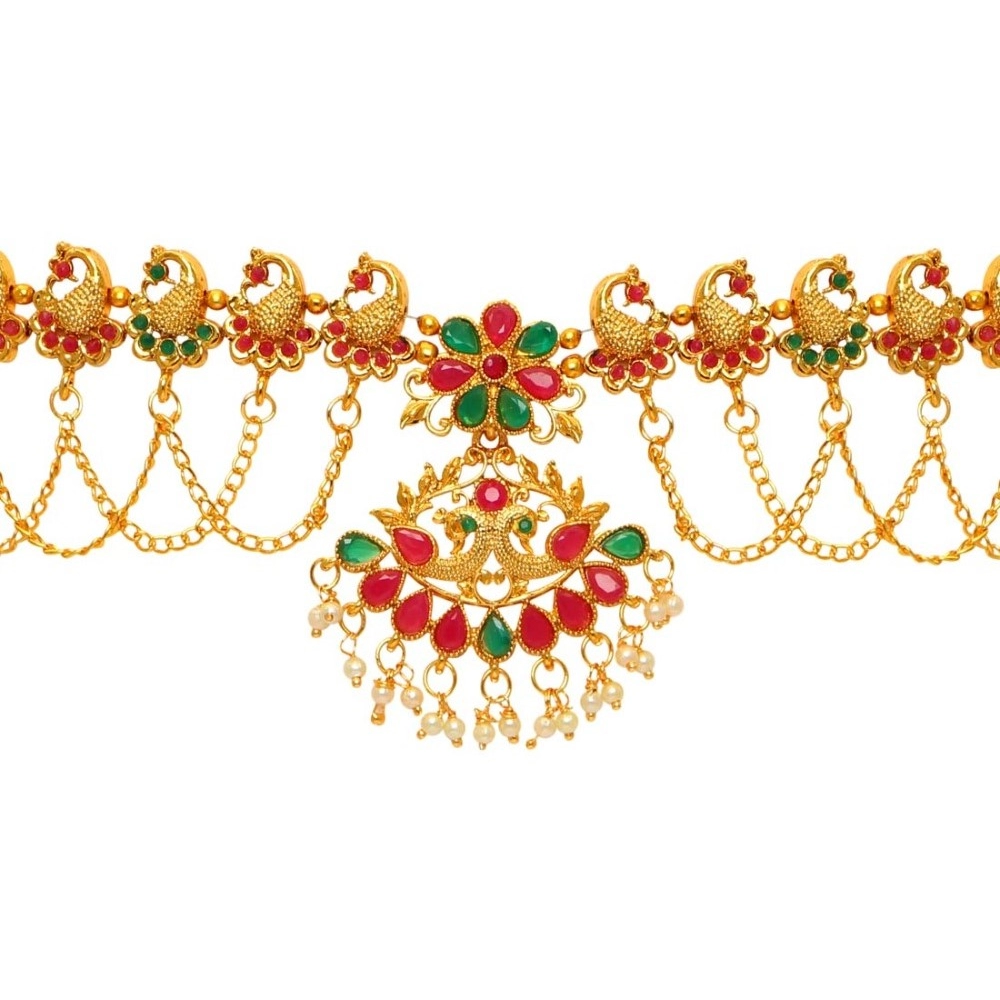 Be the first to review “Generic Women’s Maroon & Green Color Glass Stone Kamarband Adjustable Chain”