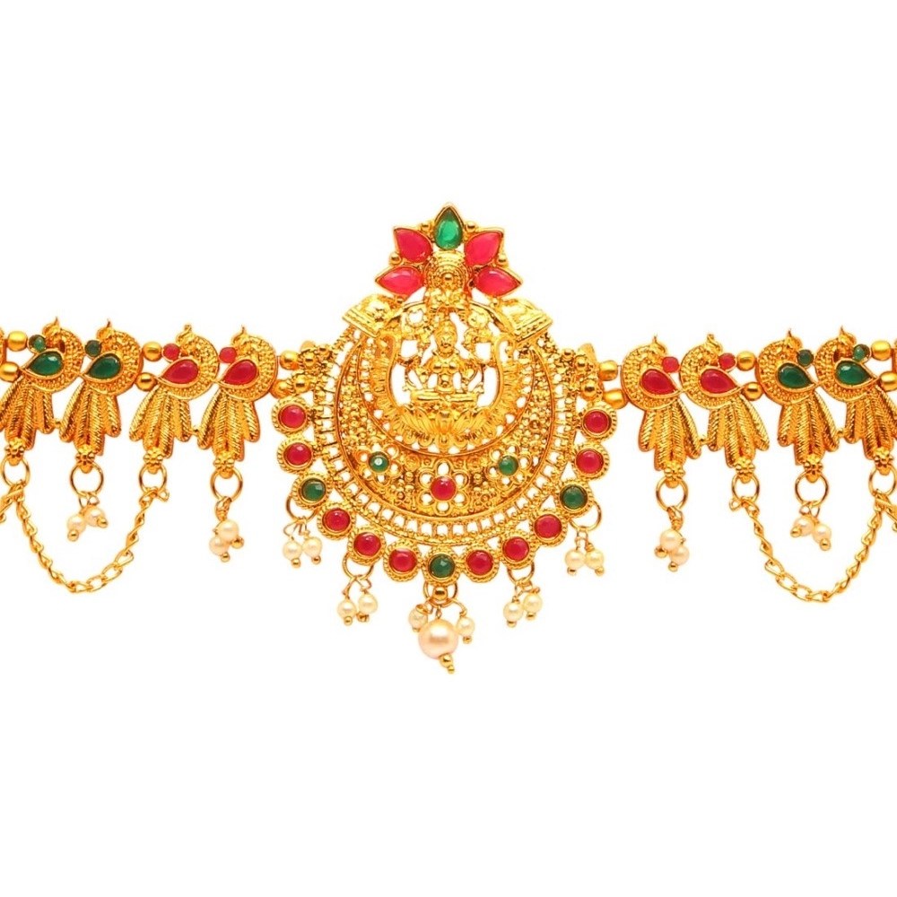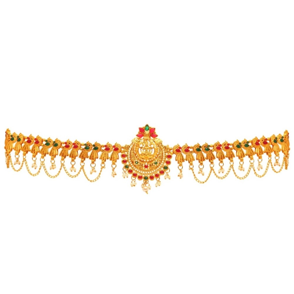 Generic Women’s Maroon & Green Color Glass Stone Kamarband Adjustable Chain