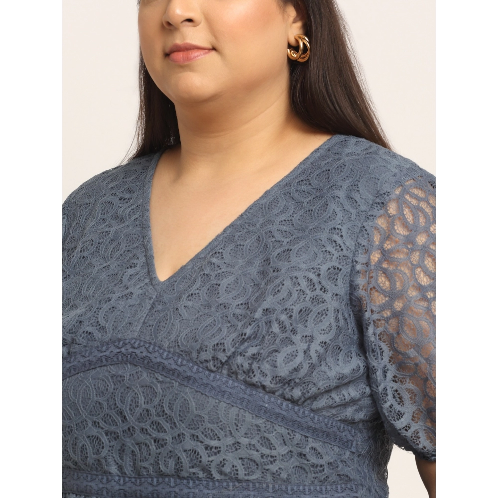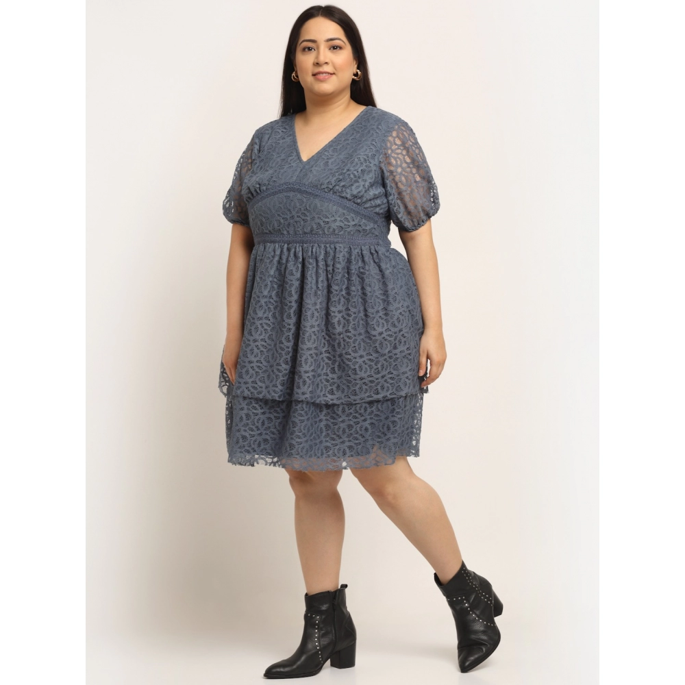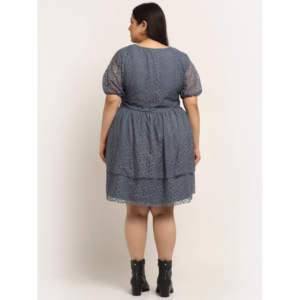 Generic Women’s Net Solid Knee Length Fit and Flare Dress (Gery)
