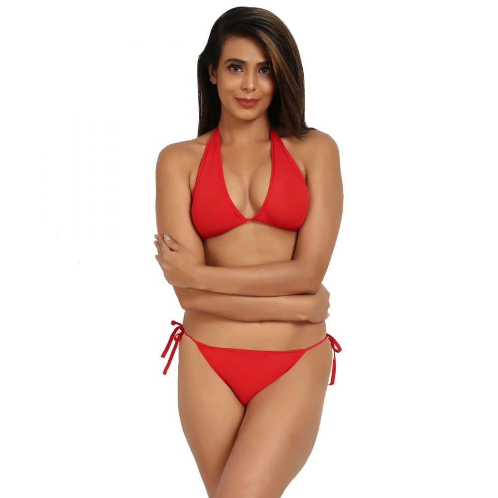 Generic Women’s Nylon Spandex Red Bikini Set Foxy Bra And Panty (Red)